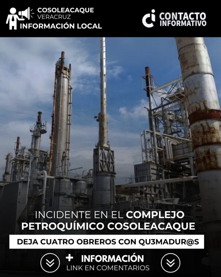 Cosoleacaque, Ver. La madrugada de este viernes 19 de septiembre se registró un incidente en el Complejo Petroquímico Cosoleacaque (CPC) que dejó como saldo al menos cuatro trabajadores con quemaduras.