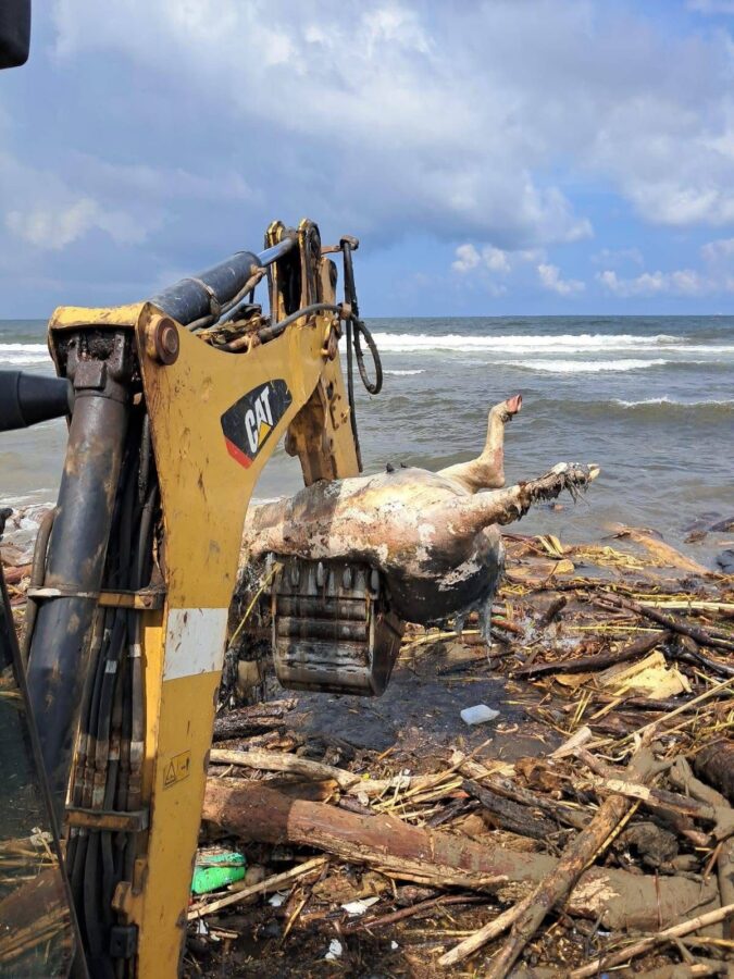 Inundaciones en Veracruz: animales afectados en playas de Coatzacoalcos son retirados y enterrados