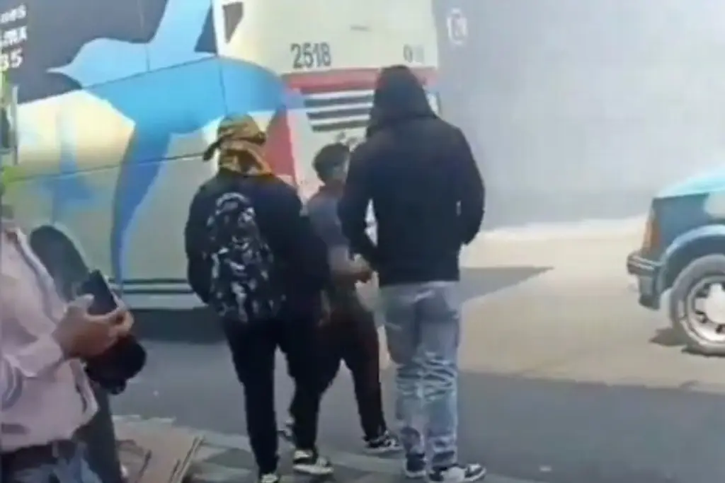 Cubrieron del rostro algunos manifestantes lanzaron proyectiles a las puertas donde se escucharon 15 detonaciones quebrando ventanas y puertas de cristal.