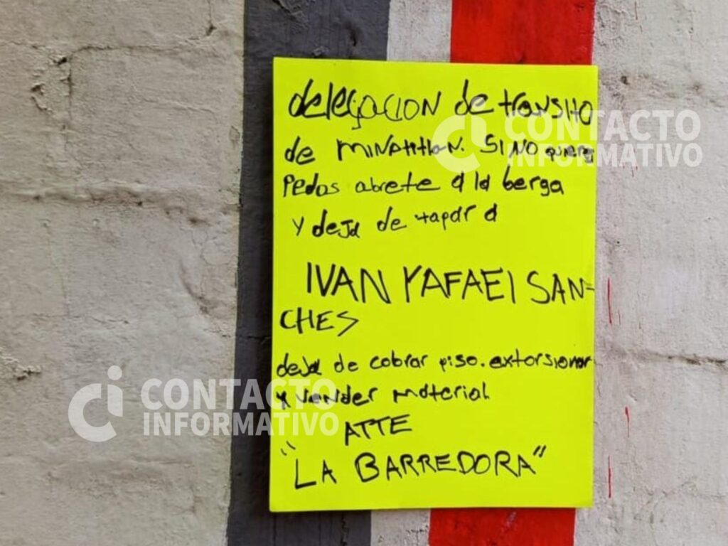 El material apareció en la entrada de la escuela primaria Libertador Miguel Hidalgo, situada en la calle París, entre Buenos Aires y Managua, en la colonia Nueva Mina. De acuerdo con los primeros reportes, personas desconocidas habrían dejado la cartulina al amanecer.