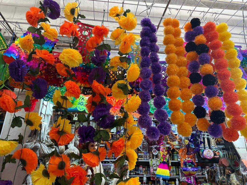 “Tenemos ya ahorita lo que son los adornos, las diademas para las catrinas, las guías de flores, también tenemos lo de San Judas Tadeo que se celebra el 28, ahora si que vamos por partes, el 28 es para San Judas, el 31 Halloween y día 1 y 2, Día de Muertos”, indicó la señora Sonia con varios años vendiendo.