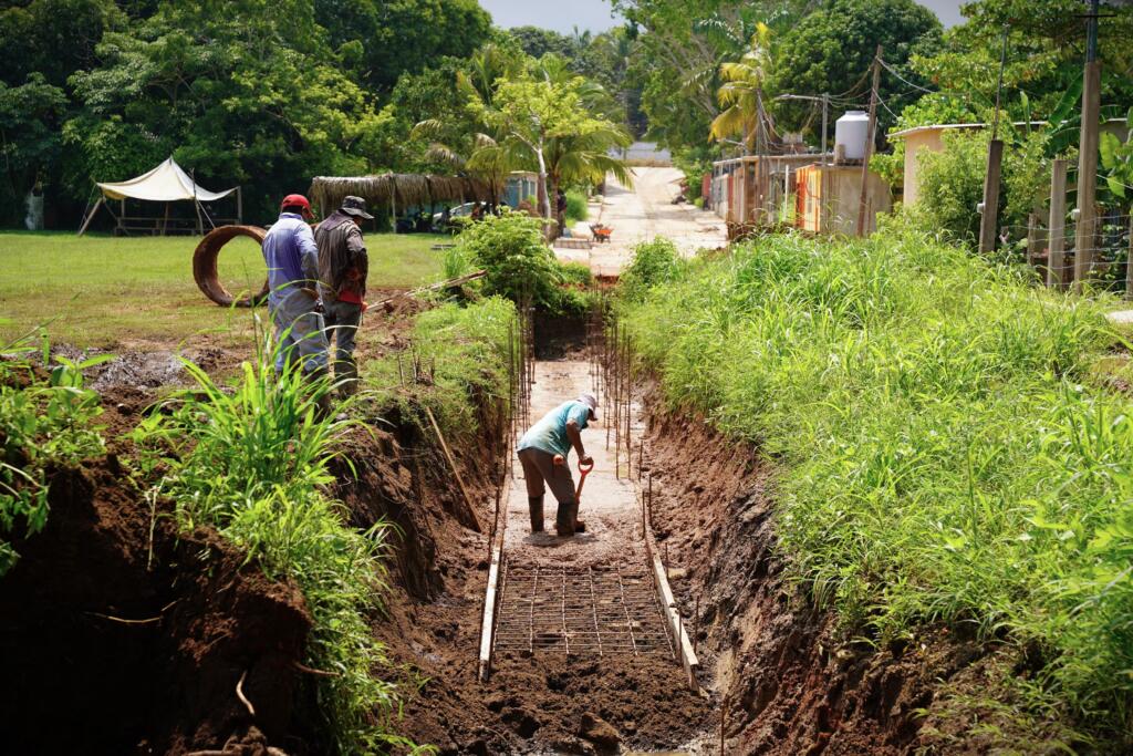 Ejemplo de las obras que se encuentran en proceso de construcción es la que se lleva a cabo en la calle Emiliano Zapata del ejido José F. Gutiérrez, donde se realizan trabajos de pavimentación y encajonamiento de canal pluvial por parte del personal de obras públicas del H. Ayuntamiento de Cosoleacaque.