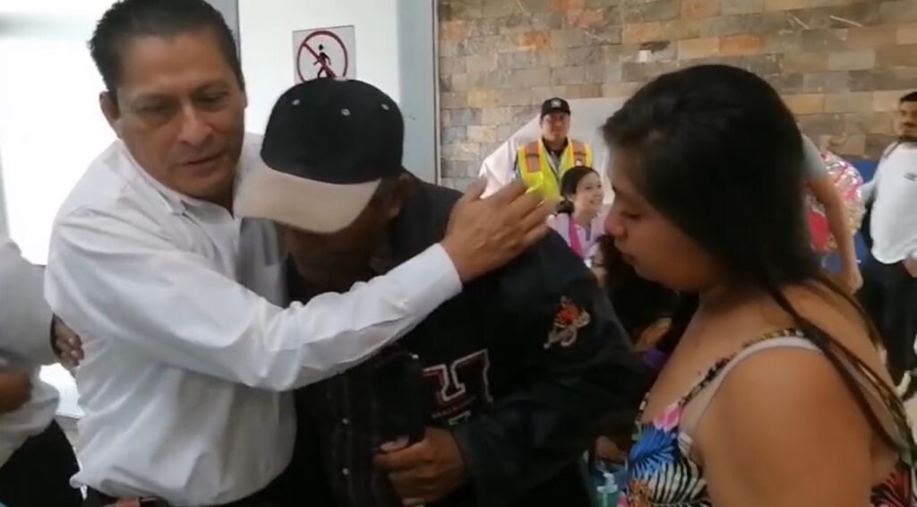 Otilio de 65 años fue recibido por su familia en el aeropuerto de Minatitlán donde fue acompañado por autoridades de Sonora y Tatahuicapan.
