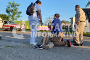 Minatitlán, Ver.- Dos personas resultaron lesionadas, luego de que un motociclista atropellara a un masculino en la avenida Justo Sierra esquina con calle Tlaxcala y Colima de la colonia El Palmar.