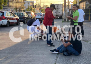 Siendo en ese momento cuando un trabajador petrolero abordo de una motocicleta, presuntamente rebasaba por la derecha, situación que hizo que impactará al masculino que iba descendiendo.