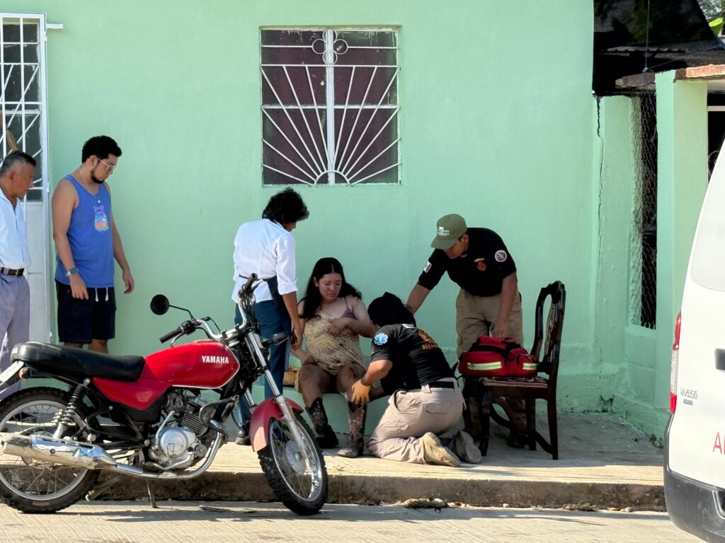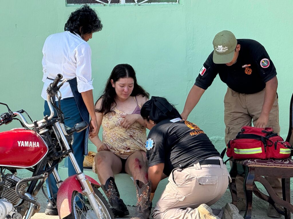 La moto terminó atrapada debajo de las llantas de la pipa, pero por suerte, el conductor logró detenerse a tiempo y no la aplastó. La joven salió de debajo del camión, aunque no sin algunos raspones y golpes, especialmente en su pierna izquierda, ya que llevaba un vestido. Su rostro también mostró algunos moretones.