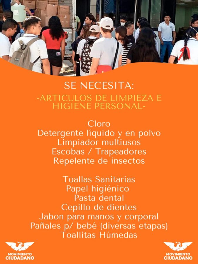 El espacio estará recibiendo víveres, agua embotellada, ropa en buen estado y artículos de higiene personal, entre otros productos de primera necesidad, con el fin de enviarlos a los damnificados.
