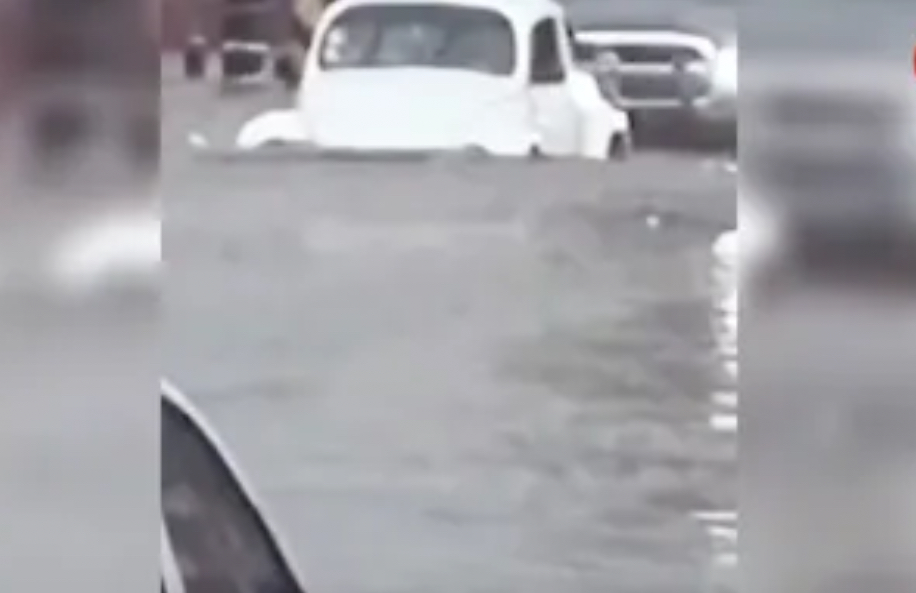 A través de redes sociales, usuarios mostraron el momento en que un automóvil VW Volkswagen atraviesa una avenida inundada en Tecámac, en el Estado de México.