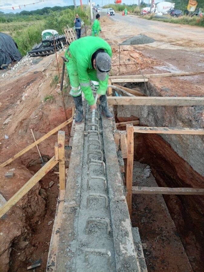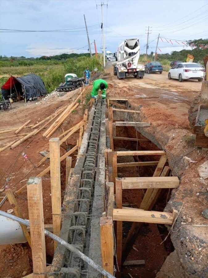 Este 27 de noviembre, las actividades consistieron en el colado de la losa central del puente, losa de acceso y muro de contención.