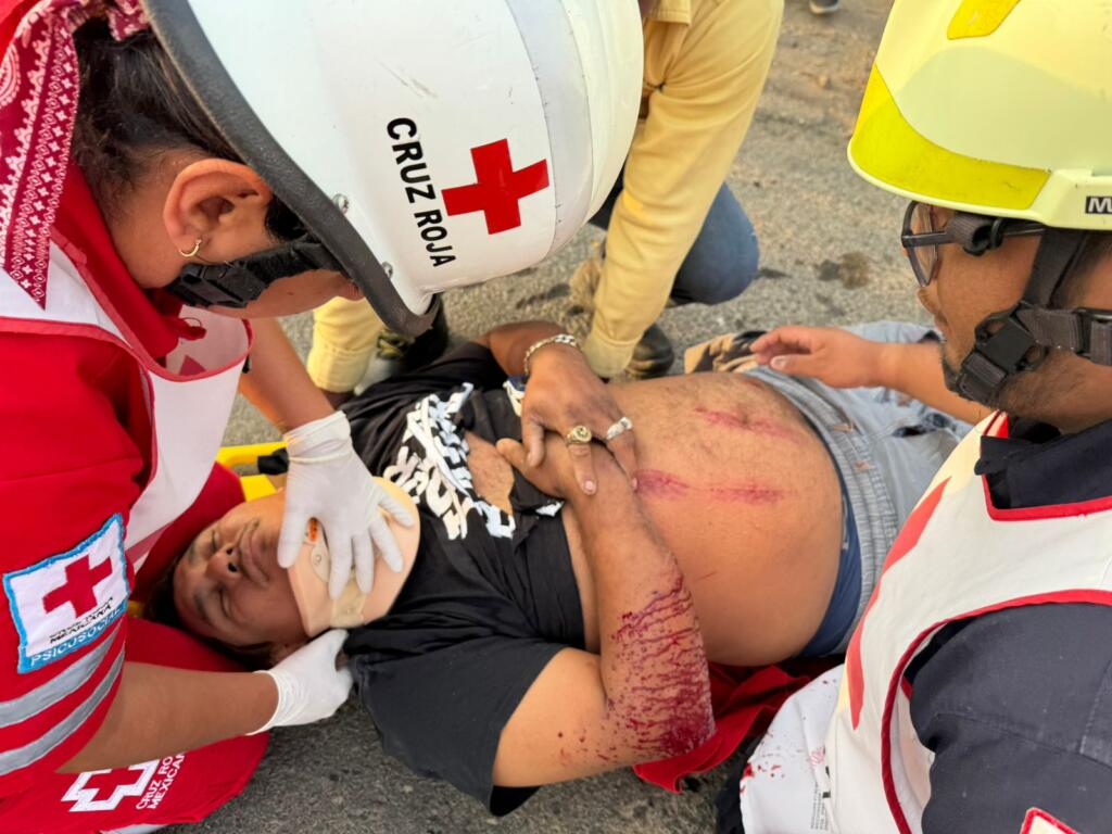 Las fracturas serían en la muñeca derecha, y pierna izquierda, el varón por fortuna no presentó una lesión mayor en la cabeza o el rostro, pese a que cayó de frente al pavimento, el taxista conducía la unidad 77 de Sayula de Alemán.