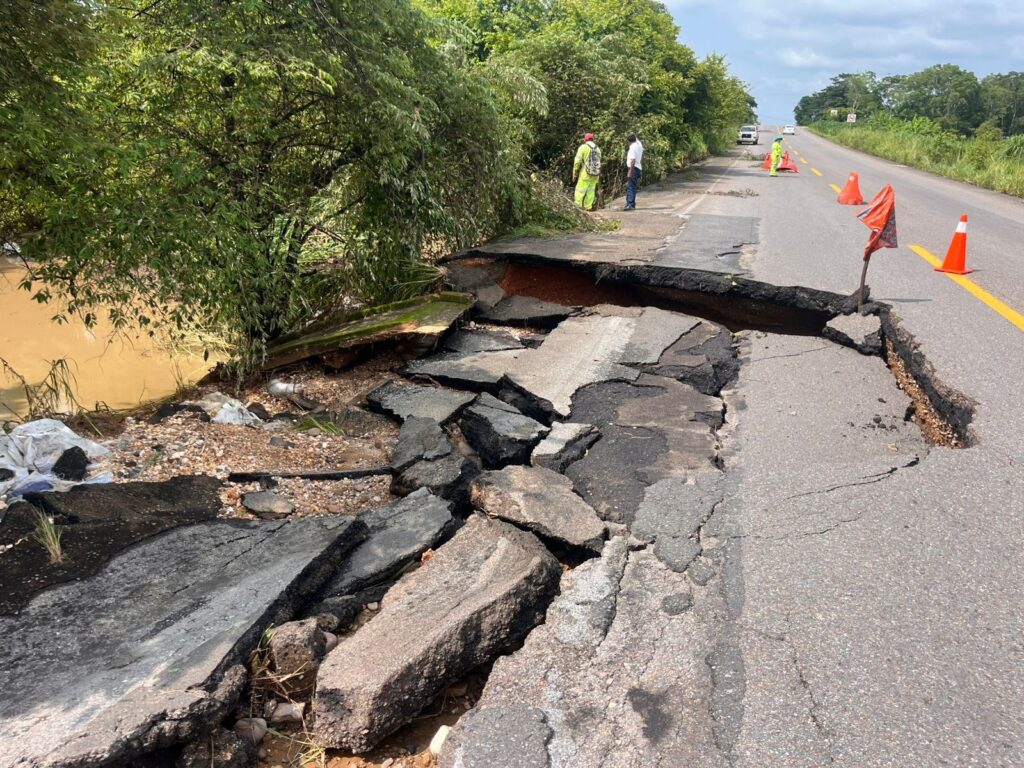 En Sayula de Alemán, cinco localidades resultaron afectadas por el desbordamiento de afluentes y el derrumbe de un cerro, lo que provocó daños en aproximadamente 950 viviendas, según el reporte del enlace regional de Protección Civil. Además, se abrió un socavón en la carretera 185 Sayula de Alemán–Matías Romero, interrumpiendo parcialmente el tránsito en esta vía clave para la región.