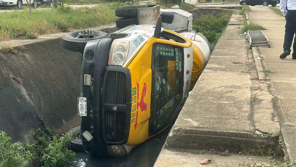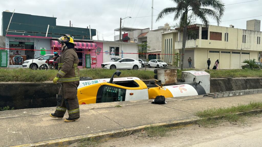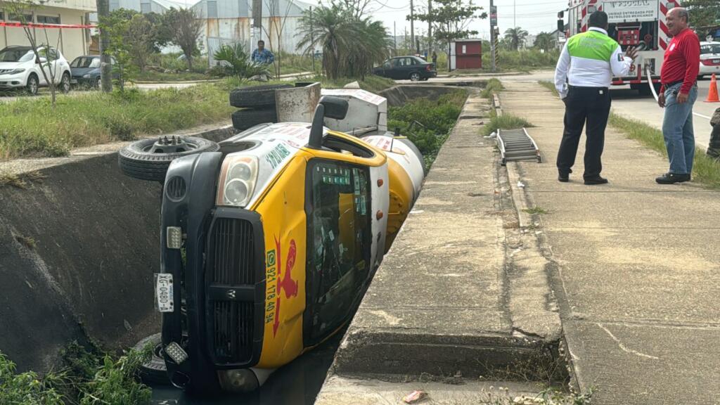 Presuntamente una falla mecánica en la unidad originó que el operador perdiera el control y terminara en el fondo del canal