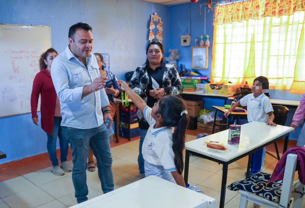 Durante su visita a la institución educativa, Ponciano Vázquez Parissi recorrió las aulas, saludo a los docentes y a los pequeños que se incorporaron a las clases, tras concluir el periodo vacacional decembrino.