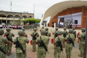 Cosoleacaque, Ver. El presidente municipal Ponciano Vázquez Parissi asistió la ceremonia cívica y el corte inaugural del módulo de canje de armas 2025 que realizo el personal del 3er. Batallón de Infantería de la 29va. Zona Militar, en el parque central Miguel Hidalgo.
