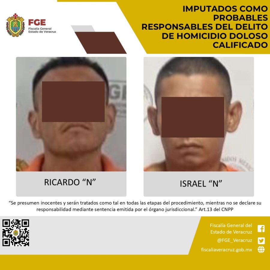 Se trata de Israel “N” y Ricardo “N”, quienes fueron imputados por la Fiscalía Regional Coatzacoalcos, como probables responsables del delito de homicidio doloso calificado cometido en agravio de la víctima C.L.L.