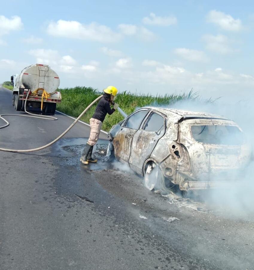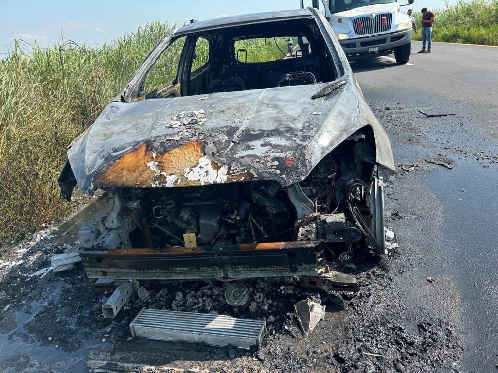Cosoleacaque, Ver. La tarde de este jueves, personal de protección civil y bomberos de Cosoleacaque atendió el reporte de incendio de un vehículo particular sobre la carretera Minatitlán- Coatzacoalcos, en la zona conocida como Las Matas.
