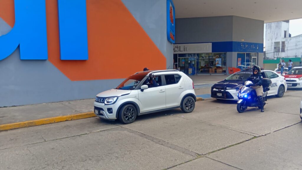 La policía municipal detuvo a un sujeto y aseguró un automóvil afuera de la tienda Chedraui I de Coatzacoalcos, tras un reporte ciudadano.