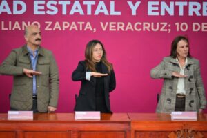 Xalapa, Ver., 10 de noviembre de 2025.- En representación de la LXVII Legislatura del Estado de Veracruz, la presidenta de la Mesa Directiva, diputada Naomi Edith Gómez Santos, acudió a la Ceremonia de Graduación y Jura de Bandera del Curso de Formación Inicial para Policía de Proximidad Estatal y Entrega de Patrullas, Motos y Drones, encabezada por la gobernadora de Veracruz, Rocío Nahle García. La inversión, que supera los 200 millones de pesos, fortalece las capacidades operativas de la fuerza policial e impulsa la Estrategia Estatal de Seguridad para mantener la paz en Veracruz.
