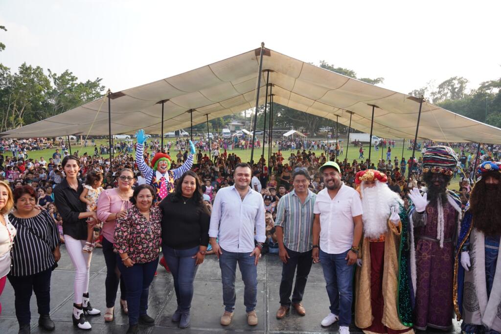 Melchor, Gaspar y Baltazar llegaron este jueves al campo Corona de la localidad de Coacotla para entregar juguetes, dulces, palomitas y jugos a decenas de niños y niñas de las diferentes comunidades de la zona rural que disfrutaron de los juegos y la diversión que hace posible el H. Ayuntamiento de Cosoleacaque.