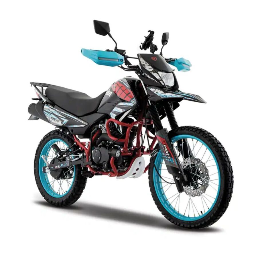 La motocicleta, marca Italika DM-200, con colores negro, azul y rojo, se encontraba sobre la acera de la calle Correos, a escasos metros de la esquina con Miguel Hidalgo, muy cerca de la ganadera local.
