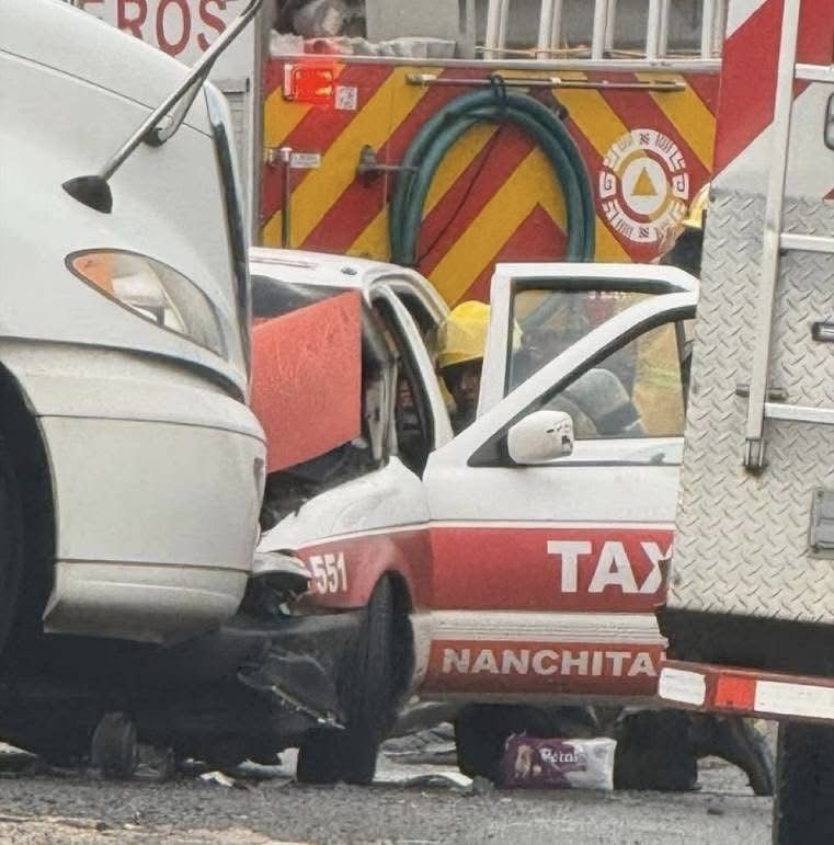 *Se estrella taxi de Nanchital contra tráiler con tanque cisterna en la carretera Coatzacoalcos – Villahermosa*