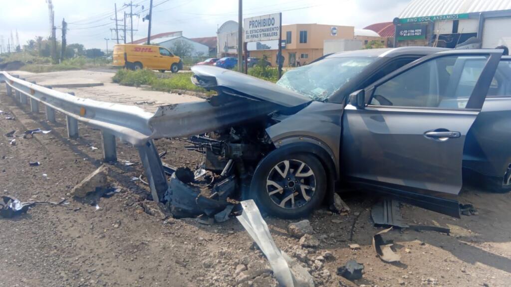 El conductor de un vehículo se salvó de milagro luego de que su automóvil terminó contra un muro de contención sobre la carretera Costera del Golfo, Coatzacoalcos – Villahermosa, frente a la bodega de CryoInfra.
