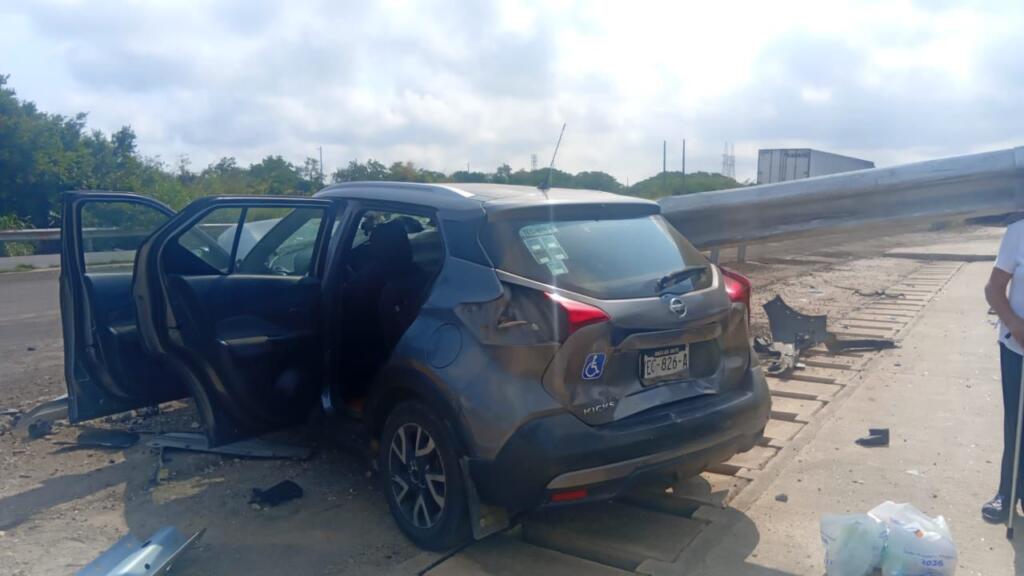 La unidad que terminó en pérdida total es una camioneta marca Nissan, tipi Kicks, color gris, con placas YEC-826-A del estado de Veracruz, que manejaba Derek Sosa, vecino de la colonia Tanque 12 del municipio de Nanchital.