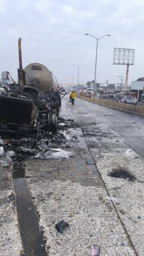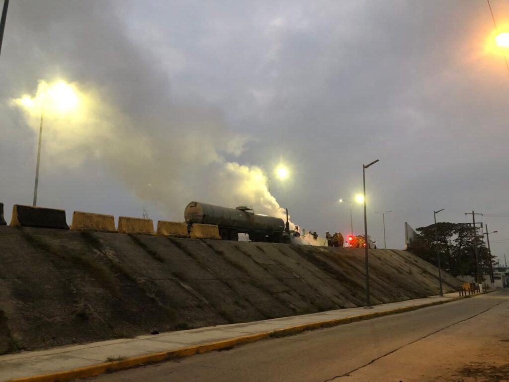 Un tráiler con tanque cisterna se incendió en el puente Joroba en la colonia Primero de Mayo de Coatzacoalcos.