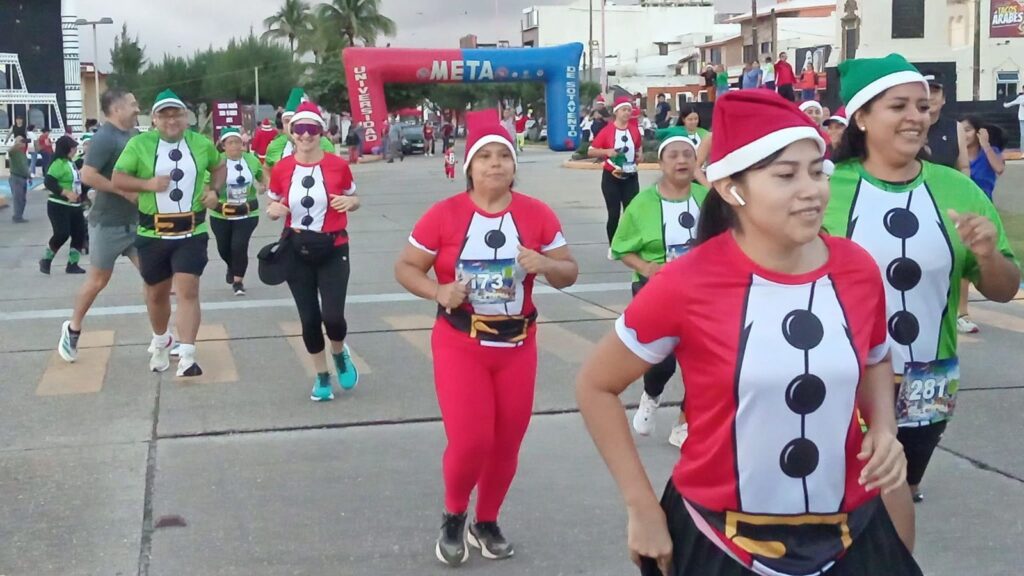 Entre sana convivencia se realizó en el malecón costero de Coatzacoalcos la primera edición de la carrera «Santa contra Grinch Run 2025».
