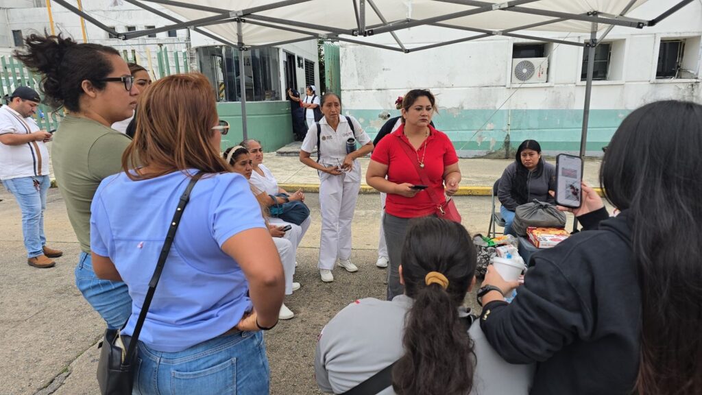 Segundo día de protesta de personal de enfermería del IMSS-Bienestar en Coatzacoalcos por descuentos injustificados