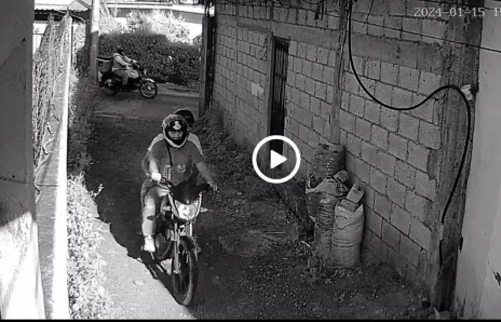 En el vídeo se observa como la pequeña en compañía de su madre de edad joven ingresan de la Avenida Abasolo Sur a la Privada y en cuestión de segundos, dos desconocidos con cascos protectores entran a bordo de una motocicleta aparentemente Italika 150.