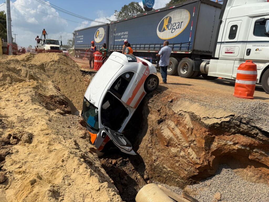 Dijo llamarse José Luis, el chofer del taxi, y aseguró que no estaba cerrado el paso, y que una vez cayó, fue que rápidamente corrieron a colocar una malla de plástico y 3 tambos de advertencia, para luego salir por sus propios medios, y causar asombro entre el resto de automovilistas y comerciantes del sector.