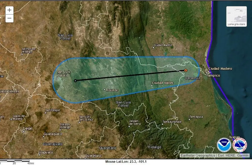 -Hora estimada de impacto: 4:30- 5:00 horas cerca de Tampico.¡