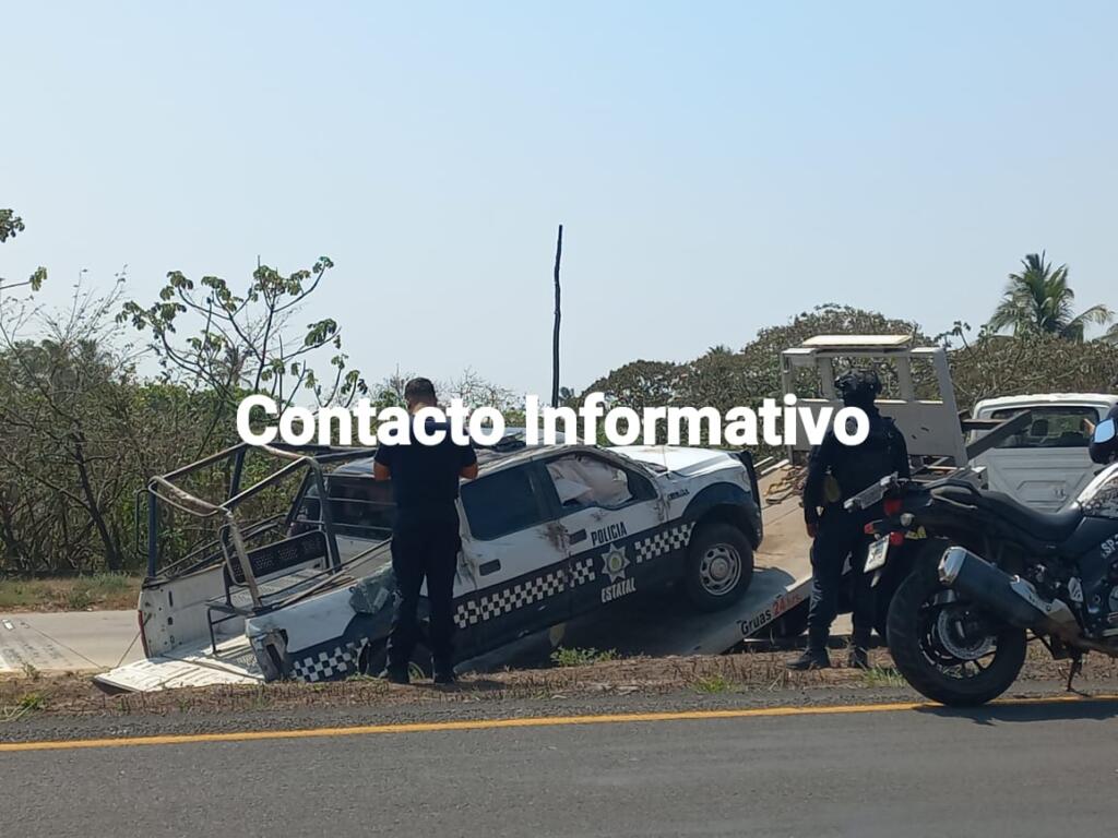 Cosoleacaque, Ver.- Elementos de la Policía Estatal, resultaron lesionados luego de volcar en la patrulla en la que viajan; hechos sucedidos en la autopista Acayucan – Cosoleacaque con dirección a la colonia Patria Libre.