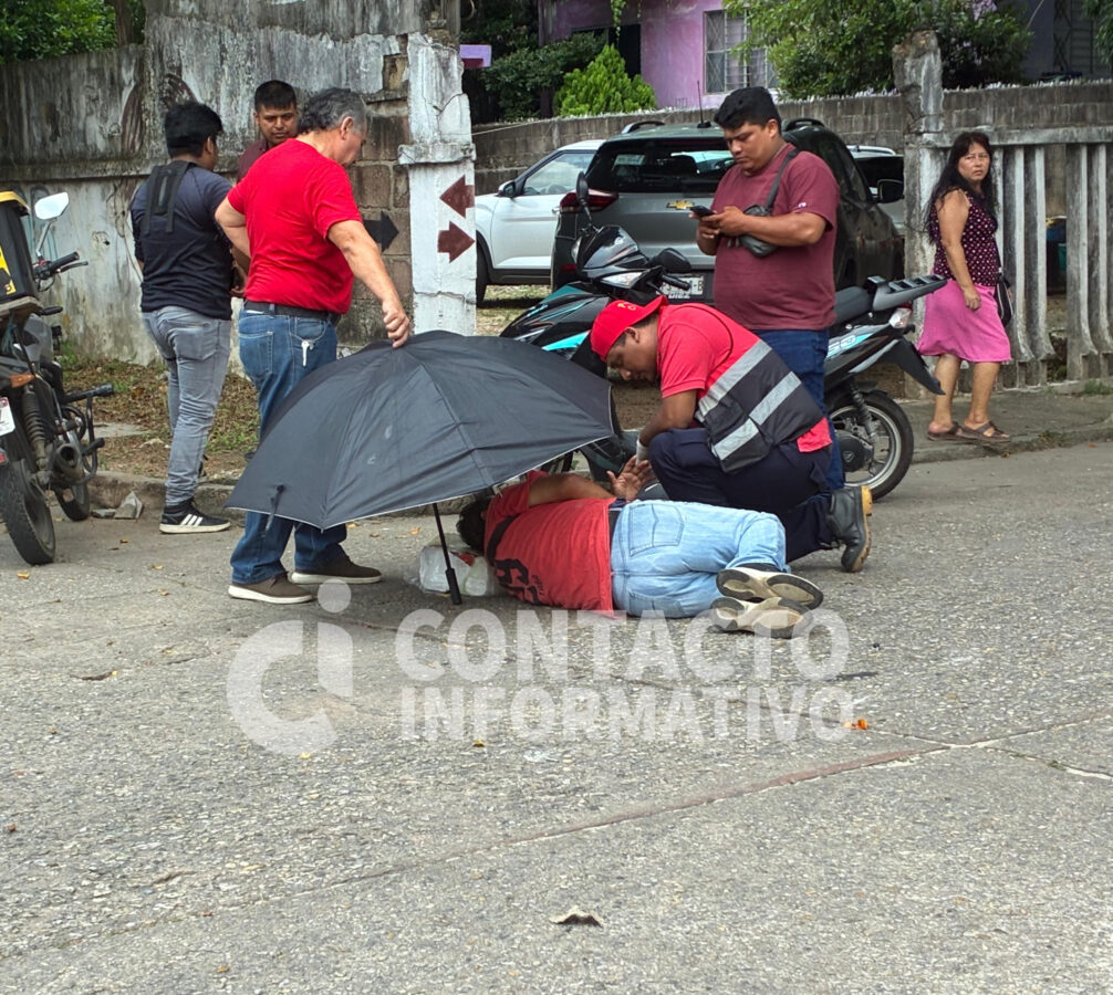 Minatitlán, Ver. Un motociclista de 57 años terminó hospitalizado con una fuerte lesión en la cabeza tras un choque registrado la tarde de este domingo en la colonia Playón Sur.