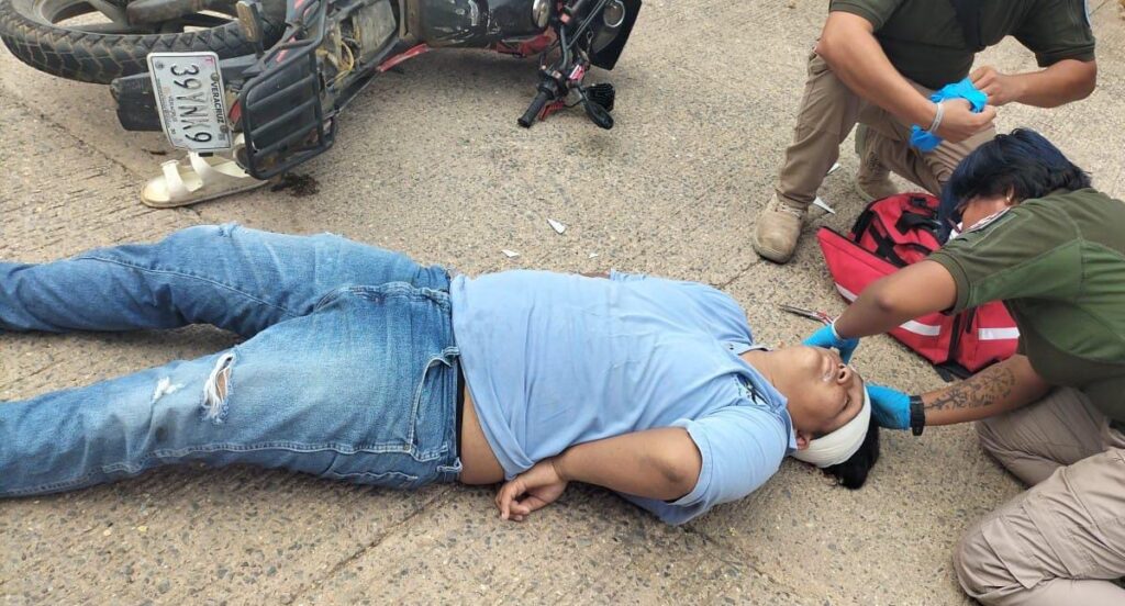 Según testigos, el impacto fue tan fuerte que el motociclista salió disparado y cayó de forma aparatosa al pavimento. Presuntamente, el conductor de la moto viajaba sin las medidas de seguridad necesarias, como casco, guantes y rodilleras.