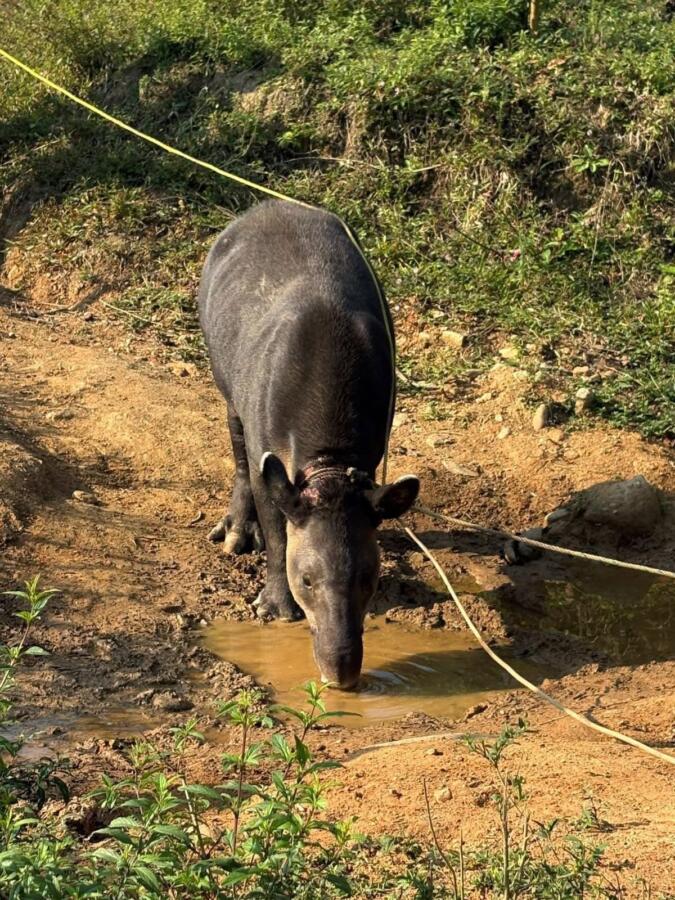 El tapir se encuentra en buen estado de salud y se realizarán recorridos en el punto donde fue localizado, para detectar si hay otros ejemplares y reinsertarlos en un espacio seguro.