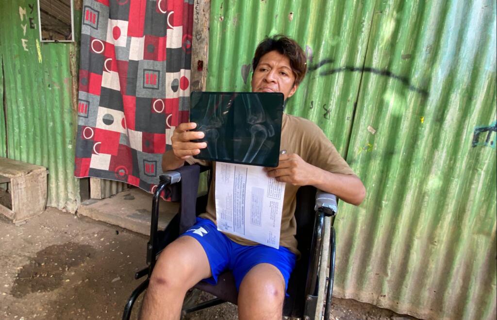 Las radiografías realizadas en la Cruz Roja revelaron fracturas en el tobillo y pierna izquierda, lo que lo ha dejado impedido para trabajar como ayudante de cocina y mantener a su familia, según lo dicho por Jorge de 43 años.