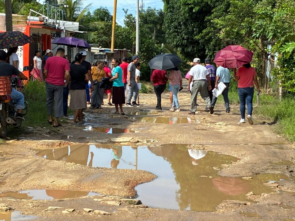 Durante una caminata organizada por la comunidad, los vecinos mostraron las calles convertidas en verdaderos lodazales, donde cruzar implica mojarse hasta las rodillas. “Aquí tenemos que usar botas para llevar a nuestros hijos a la escuela, y a veces pasamos entre aguas sucias”, lamentó Cristina Francisco Ramírez, quien lleva 33 años viviendo en el lugar.