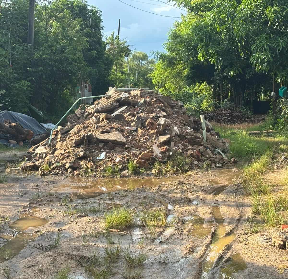 Minatitlán, Ver. Familias de la colonia Liberación solicitaron la intervención de autoridades locales para liberar la calle 5 de Mayo, obstruida desde hace más de un mes con escombro, basura y otros desechos. Durante esta temporada de lluvias, la acumulación provoca encharcamientos que afectan directamente a las viviendas de la zona.