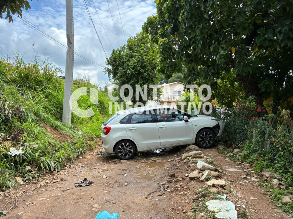 Tras el percance, el chofer fue auxiliado por familiares y trasladado a recibir atención médica. En su caída, el auto también ocasionó daños materiales al impactar contra un poste de concreto de la Comisión Federal de Electricidad (CFE).