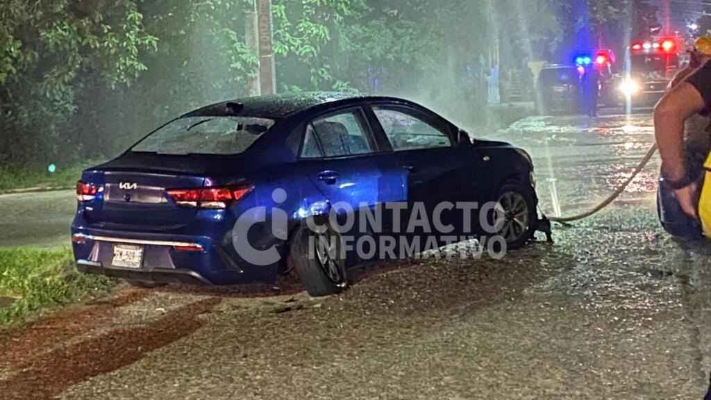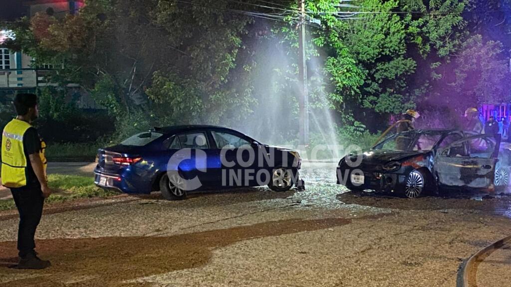 Vehículo se estrella contra auto estacionado en Minatitlán, Veracruz; tripulantes incendian unidad colisionada y huyen