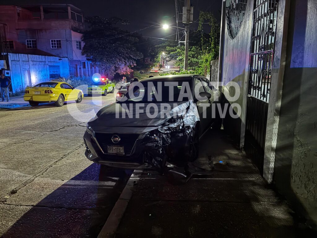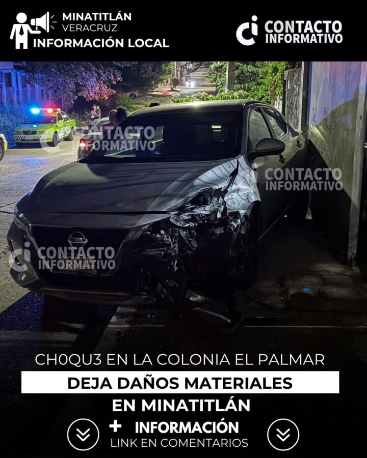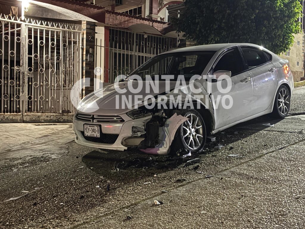 Minatitlán, Ver. Un aparatoso choque entre dos autos se registró en la colonia El Palmar, en el cruce de las calles Colima y Querétaro, alrededor de las 22:40 horas del domingo. El accidente involucró a un Dodge Dart, color blanco, con placas YEY-340-B, y un Nissan Sentra, color gris, con placas YPT-176-B.