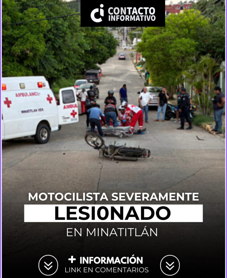 Minatitlán, Ver. Un fuerte accidente vial registrado la tarde de este miércoles en la colonia El Palmar dejó como saldo a un motociclista gravemente herido, tras impactarse contra un automóvil particular.