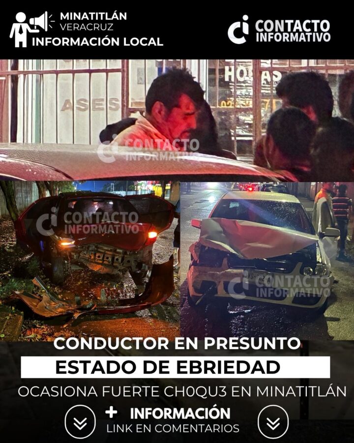Minatitlán, Ver. Una aparente noche de fiesta terminó en tragedia vial en Minatitlán, cuando un conductor en supuesto estado de ebriedad provocó un choque por alcance en la colonia Miguel Hidalgo, dejando una mujer lesionada y dos vehículos severamente dañados.