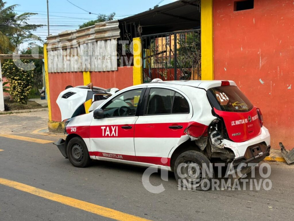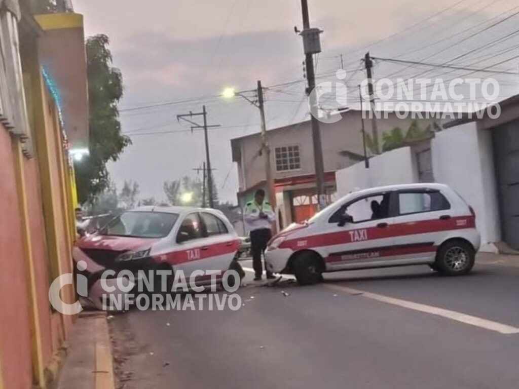 El choque ocurrió sobre la calle Tampico, en el tramo comprendido entre Río Pánuco y Segunda de Tuxpan. Tras la colisión, el taxi con número económico 243 terminó arriba de la banqueta, impactando la fachada de una vivienda. La otra unidad involucrada, el taxi 3207, también presentó afectaciones considerables.