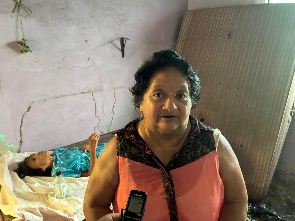 “Estaba tirada, rodeada de basura…no puede valerse por sí sola. Tememos por su salud”, relató Rosa María Ortiz, una vecina que, junto con otros habitantes del sector, se ha encargado de alimentarla y vigilarla.