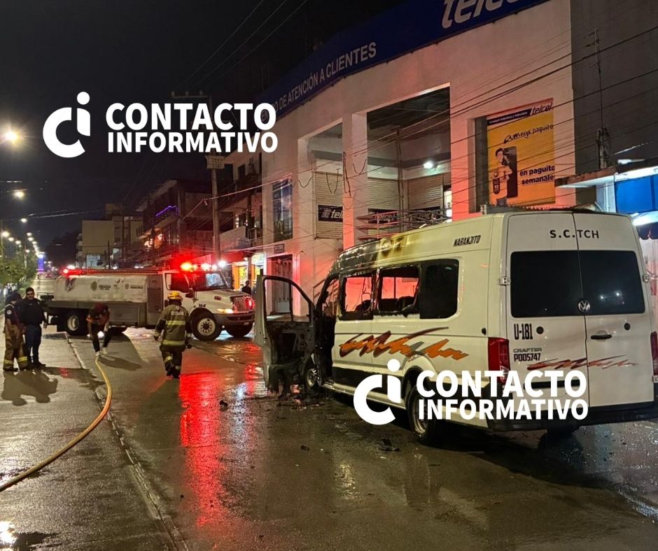 Minatitlán, Ver. Momentos de tensión y alarma se vivieron la noche de este martes cuando una unidad del transporte público de la línea Chacalapa se incendió mientras circulaba por la avenida Justo Sierra, obligando a los pasajeros a evacuar de emergencia.