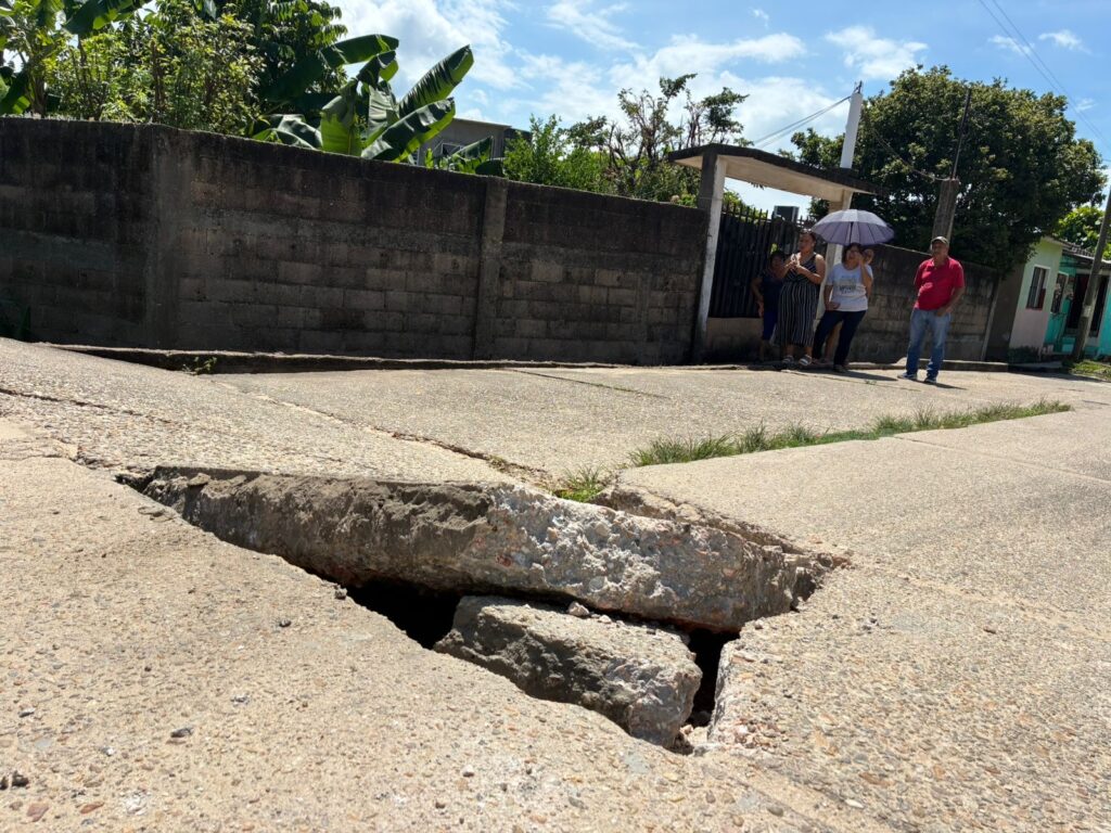 La situación empeoró este martes, cuando un camión de carga provocó un colapso mayor en el pavimento. Ante el peligro de un accidente, los propios habitantes acordonaron el paso que conecta las colonias Santa Clara y La Bomba.